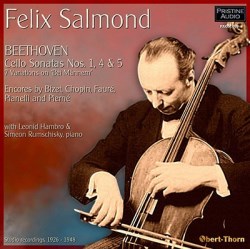 The three Beethoven Cello Sonatas we have here derive from a private LP released in 1960 to help raise funds to establish a scholarship in the cellist’s name. In fact the recordings had been taped twelve years before that in 1948 in the Juilliard Concert Hall, New York City. A year earlier on 29 March 1947, to mark the twenty-fifth anniversary of his American debut, Salmond and his pianist Leonid Hambro had programmed all five sonatas in the same venue. Disappointingly only three were issued on the LP yet they present the cellist in the finest sound we will ever hear