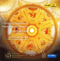 This exciting release of the celebrated and the little known contains live Dresden accounts of the Bruckner Symphony No. 7 from the Semper Oper and Wagner’s Das Liebesmahl der Apostel recorded at the Frauenkirche where the work was premièred in 1843. Both works were key milestones of Christian Thielemann's inaugural season at the Staatskapelle Dresden in 2012/13.
