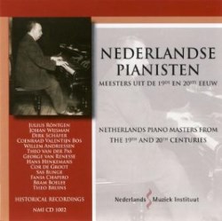The Netherlands Music Institute is naturally devoted to the promotion of the country’s musical heritage. One of its greatest roles is as guardian of documents, archives and associated biographical information. Margaret Krill, who is on the staff of the NMI, wrote Netherlands Piano Masters from the 19th and 20th centuries, published by Bekking and Blitz and a portrait of 26 Dutch pianists active between 1850 and 1980. This CD acts as a supplement, as it wasn’t possible to incorporate it within the book itself. One downside is that if you want information about the pianists you’ll need the book, or decent online sources, as there is none printed in the booklet, for obvious reasons. If you want the book, try the publisher