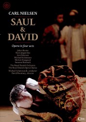 I believe this is the first video of this opera so far made available and the number of sound recordings is quite limited. My views are a mixture of delight at finally being able to watch a production of a work I have regarded very highly for many years, admiration for a magnificent cast putting their all into a remarkable piece of early Nielsen, and finally sadness that yet again the directorial decisions do much to damage the whole enterprise. Despite some good things in this staging it is ultimately overwhelmed by David Pountney's political agenda. The various confrontations are among the good things: Saul and David are two such disparate, one might also say desperate, characters that their meetings grip one's attention. The prophet Samuel clashes impressively with Saul at several points. David's moments with Mikal work well, as do his exchanges with Jonathan. Against this are a bicycle-riding Witch of Endor, Saul managing to impale himself on a convenient construction crane hook and Mikal dressed like a 1950s heiress despite the presence of some sort of resistance army all around. What depressed me most was the plethora of modern regietheater clichés like army uniforms, kalashnikovs, great-coats, dying characters on hospital drips, blocks of ruined flats and dancing where the score does not ask for it. I could go on. The upside of this performance is the quality of singing by both soloists and chorus and the magnificently powerful orchestra under the inspired direction of Michael Schønwandt. If one closes one's eyes and just listens then Nielsen's score comes over gloriously well. It is a pity DaCapo could not fund the issue of this production on Blu-ray because the sound in particular suffers with old-fashioned DTS5.1 and Dolby Digital 5.1, compared to the high-resolution sound formats now available. The picture is not too bad but, whilst appreciating that recording companies are living through tough times, issuing a new production of a rare opera on an obsolete format is a missed opportunity.