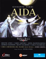 Overall Mehta has assembled a strong cast which steers clear of the starry opera world. Even so, they perform with considerable credit. No stranger to the title role of the Ethiopian Princess captured as a slave girl, soprano Kristin Lewis sings her romanzas Ritorna vincitor! and O patria Mia with assurance, commitment and good strength. Gliding smoothly through her range the American lirico-spinto communicates a tender expression and acts well. An experienced Radames, Fabio Sartori cannot compete with the matinee-idol attractions and acting abilities of Jonas Kaufmann or Roberto Alagna. He gives a sound rather than an inspired performance as the love-struck army captain. Gifted with one of the most famous of all opera arias, the romanza Celeste Aida which appears early in the opera, the Italian tenor copes well. He gives a moving rendition, masculine and sincere, relying more on dynamics than vocal colour. Anita Rachvelishvili gives the stand-out performance as the cunning Princess Amneris, the daughter of the Egyptian King. L'abborrita rivale a me sfuggia, the mezzo’s challenging aria, receives sterling treatment, firm and highly expressive. Heavily passionate, the duet with Radames Già i sacerdoti adunansi, sees convincing acting from Rachvelishvili and she generates plenty of emotional drama. With consistent self-assurance bass Carlo Colombara as the Egyptian King, baritone George Gagnidze, the Ethiopian King and bass Matti Salminen as Ramfis the high priest acquit themselves admirably. Coro e Orchestra del Teatro alla Scala di Milano under Zubin Mehta are hard to fault.