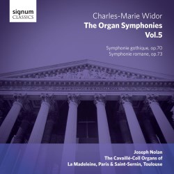 This is the second disc I have in this series. I also have volume 1 (SIGCD292). As with the earlier disc, Joseph Nolan proves himself an excellent Widor interpreter, and in this respect, this might well end up as the first complete set that I buy. Nolan’s tempos are not that dissimilar to those of Filsell. He is slightly slower in the Gothique, yet slightly quicker in the Romane, but overall he shows a good control of the music. Where Nolan is streets ahead is in his choice of instrument. He has at his disposal two wonderful Cavaillé-Coll instruments which just lift the music. Filsell makes do with two English organs, the first in St. George’s Chapel, Windsor, whilst the second is the lovely instrument of Liverpool’s Metropolitan Cathedral. The beauty of the latter instrument is lost in the challenging swirling acoustic of the round building.