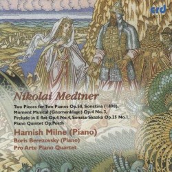 Here the Quintet is a disc-companion to Milne and Boris Berezovsky for the briskly cheery two-piano works. The Russian Round Dance is an exuberant piece: half rumba half Ballade. It's unusually showy for Medtner; full of punch and stomp yet not superficial. The second such piece is Knight Errant. It runs to 12:11, a long continuous run of music for Medtner. This piece is in the nature of a fantasy overture with many episodes including a fugue, another rumba, a stomping Russian dance, a gawky romantically abstracted cortège (8:53) and some Tchaikovskian high jinks (10:41). It ends with great and subtle ingenuity.