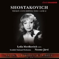 This disc was extremely well received when first issued as CHAN8820. The present reissue should help it receive proper attention again. Naturally it found a place in the Chandos 30 - Milestones box issued in 2009 to celebrate the label's thirtieth anniversary. The First Violin Concerto, rather like the First Cello Concerto, always spoke more appealingly than the Second; it's just more instantly accessible without being a softer proposition. Mordkovitch and Järvi delve into an inwardness that lies somewhere between the chill of desolation and the warmth of confiding consolation. The violin solo is distinguished by purity of note production - something more than score precision is at work here and when the brakes are well and truly off there's a bow-shredding force to be reckoned with. The soloist is placed forward but not absurdly so. It's a nicely mediated configuration. Järvi does the savagery well too and when we come to that grim echo of the Beethoven 5 'fate motif' it is nothing short of remorseless. The finale recalls the garish neon of the Khachaturian concerto - all rasp and kinetic excitement. There is also time for the tenderness and precision of the composer's softer-edged palette. The three-movement Second Violin Concerto feels the longer of the two but in fact it times out to only 30:52. It has some parallels with the First in its communing between desolation and confiding beauty. Once again nicely judged attention is paid to dynamics and the SNO brass catch the authentically 'scratchy' sound of the vintage Soviet versions. The fact that the competition includes Mordkovitch's teacher, David Oistrakh, seems not to have caused her any misgivings; nor should it have. These are confident readings and in the most excellent sound. Mordkovitch also recorded other Russian repertoire with Chandos including the Taneyev Suite and the Prokofiev violin concertos: CHAN 10540; originally CHAN 8709. We are assured that Mordkovitch never forgot her background. “Whatever Russian music I’m playing, I still feel my roots very strongly.” This disc can be convincingly adduced in evidence of that assertion.