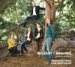 The booklet notes, co-written by the quartet, suggest that the Mozart and Brahms quintets seem “almost twinned, both of them characterized by profound enthusiasm,” which is why they make an attractive pairing on disc. The first movement of Quintet No. 2 is, certainly, one of Brahms’s most joyous pieces, especially among his late works. Here cellist Lydia Shelley really gets to show off her expressive range. As with the Mozart work, the minuet-like movement (un poco allegretto) allows the Quatuor Voce and Lise Berthaud demonstrate their natural grace and poise.