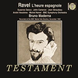 On 15 November 1960, Bruno Maderna took the opera into the Maida Vale Studios, London for this BBC recording. The Italian conductor and composer had a particular affinity with Ravel’s music, being acutely sensitive to its subtle nuances and colouristic palette. He cast the wonderful Suzanne Danco in the role of Concepcion, considering her lyric soprano ideally suited to the part. The recording has previously surfaced in pirated incarnations, but this is the first time it has been edited from pristine master tapes. Stradivarius released the performance (STR 10062) in 1998 and, strangely, gave the recording venue as the Royal Festival Hall.