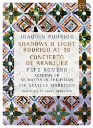 The present DVD is fashioned around two full-colour films by Larry Weinstein: one of a studio performance of Aranjuez; the other a revealing 70-minute documentary. Pepe Romero is the soloist and beguilingly introduces the work and his performance in a five-minute talk to camera. The studio is in Watford Town Hall and I take this to be ancillary to a Decca recording fixture. It's not a simple film of a recording: there's none of the usual apparatus: no microphones, booms, trailing leads. The continuous performance is filmed in a variety of shots including glowing close-ups - some very close - of Marriner, Romero and the orchestra members. These are interspersed with longer shots of the whole group and oblique views of Romero's hands. Whole sequences of filming in and around the Palace of Aranjuez is sequenced in. These images are more effective when the scenes are external to the Palace; internal footage makes things rather dark. It's a typically warm production and each movement is separately tracked.