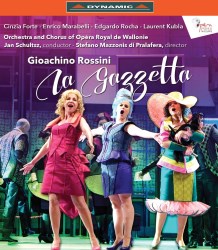 In 2001 La Gazzetta was revived at the Pesaro Opera Festival using the critical edition prepared by Philip Gossett and Fabrizio Scipione without the missing quintet that was cut but is crucial for understanding the plot. However, in 2012 music found in a bundle of manuscript scores in Palermo was identified and authenticated as the lost act I Quintet and in this Stefano Mazzonis di Pralafera staging has been restored to its rightful place. This live performance by the Opéra Royal de Wallonie is the professional première of the complete version. Undoubtedly the score isn’t one of Rossini’s greatest comedy inspirations, although amusing and colourfully staged it doesn’t come close to attaining the enchanting engagement of its close neighbours Il barbiere di Siviglia and La Cenerentola.