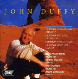 The Utah Chapter of the Sierra Club commissioned Symphony No. 1 in order to draw attention to the endangered, pristine wilderness of southern Utah. It was given its first performance by Paul Connelly and the Orchestra of St. Luke's at Avery Fisher Hall in New York City on 29 November 1989. This three-movement piece starts with a movement God's Wilderness which shares the commanding atmosphere of the first of the seven Portraits. That impelled forward grunt is redolent of the orchestral minimalists; you may even think of the dynamic drive of the first movement of Moeran's Symphony in G Minor. The second movement is Requiem for Glen Canyon. Glen Canyon was flooded in 1961 in order to establish a state recreation area. Duffy takes this movement as a basis for contemplation of earth's primeval history. Puwa is the finale - the word means 'life force' in the language of the native American Ute tribal group. Again Duffy leans on Copland's example but does so with freshness and a boisterous sanguine spirit.