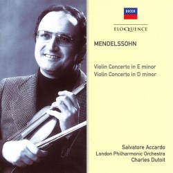 Salvatore Accardo was 34 when he recorded this Mendelssohnian brace in April 1976. His wunderkind days were well behind him – a sensational 1954 appearance aged 13 was followed by first prize wins at the Geneva and Paganini competitions – and this Decca disc came at a time when he was soloing with I Musici. As one of the many who love his Bruch recordings with Kurt Masur, who surely provides amongst the most imaginative accompaniments on disc, but who hadn’t heard his Mendelssohn disc I had the highest expectations. Charles Dutoit, another accommodating conductor, directs the LPO in Henry Wood Hall.