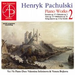 If you’re expecting to hear the harmonic lushness and denser textures of Rachmaninoff or Bortkiewicz, then Pachulski falls short by some twenty or thirty years. But from the very opening bars of the Fantaisie in A, Op 17, there is an immediate appeal and sincerity in the writing, ideally crafted here for the medium of two pianos. Cast in three distinct movements, the opening ‘Andante’ projects an idyllic scene with its attractive and memorable melody moving between major and minor tonalities, before an extended minor-key section ensues, with ever-increasing drama, reflected in the somewhat busier piano writing. This leads once more to the calm of the opening, via some impressive double-octaves, and the addition of triplets in the accompaniment now gives greater urgency to the original theme. The ensuing Scherzo immediately cranks up the virtuosity of the writing with a brief introduction before the delicate and attractive dance-like Scherzo-theme proper emerges. The slower Trio section functions by way of affording contrast, as well as going some way towards providing a slow movement, which is missing as such. The Scherzo returns, seemingly to round the movement off, but is interrupted by a reprise of the calmer Trio, in which mood the movement ends. The Finale starts out with a catchy little tune, a cross between Chopin’s ‘Butterfly’ Étude from his Op 25 set, and ‘La Jongleuse’, by fellow-Pole Moritz Moszkowski. The intervening episodes of this Rondo provide for greater passion and emotion, often in the minor key, and which contrast with the playfulness of the main theme itself. There appears a false return of the penultimate appearance of the main theme, before the composer shifts the key back to the tonic (A major). The theme’s final, slower appearance against rippling arabesques still leads to a spritely and effective dénouement.
