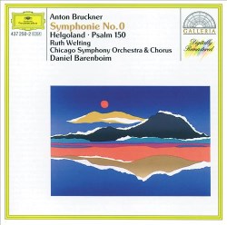 In fact Bruckner’s Nullte was at any rate partially written after his numbered Symphony No. 1 so it seems odd that some conductors who have recorded complete cycles of his symphonies, such as Karajan and Jochum, deliberately omitted the work from their surveys. I think that the first conductor to include “No. 0” in a cycle was Bernard Haitink, but since then conductors such as Chailly, Barenboim and Solti have added it to their sets as a matter of course. Quite rightly, too; it is a very good work indeed even if its purposeful striding opening is perhaps more reminiscent of Schubert than mature Bruckner. The influence of Beethoven is also palpable throughout. In the first movement Barenboim, adopting a very flexible interpretation of the tempo indication Allegro, brings out the many anticipations of Bruckner’s later style and the climax of the development section is really thrilling. He makes much more of the music than the more classically minded Haitink did — speaking from memory of a recording which I no longer possess. I currently own the Chailly, which I find superb with its modern digital recording; but Barenboim rivals him at every turn. He cannot do much with the rather under-powered Adagio, but when in the third movement Bruckner produces one of his pounding scherzos we are in the realm of the mature composer, and the results are utterly convincing. After that the finale is more conventional in style although we are provided with some powerful climaxes, not least in the stentorian delivery of the opening theme.