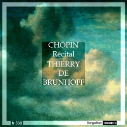 Two composers at the centre of Thierry de Brunhoff’s (b. 1933) repertoire were Chopin and Schumann. It’s hardly surprising when you consider that, from the age of nine, he studied with Alfred Cortot at l'Ecole Normale de Musique in Paris, becoming his favourite pupil. Though he hasn’t recorded for many years, studio performances can be found by those willing to explore the second-hand market. I picked up a couple of ‘twofers’ recently, testimony to his fine pianism. One had been released in the now defunct ‘Rarissimes’ series, issued by EMI France in 2004 (585249), containing music by Chopin, Schumann and Weber. Another issue is of the complete Chopin Nocturnes on Pantheon D22727. I’ve also seen a CD of Weber piano works on Erato, apparently only available in Japan. Expanding his discography, Forgotten Records have made a CD transfer of this rare French Vega LP of Chopin works in warm, intimate re-masterings.