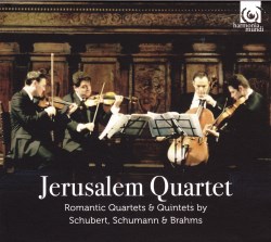 A true masterwork of the repertoire, the Piano Quintet, Op. 44 is glorious with the opening Allegro brillante containing divine lyrical passages that the Jerusalem clearly relish. Marked In modo d'una Marcia - Un poco largamente the second movement inspires the players to fashion a near dream-like, fairytale world which starkly contrasts with the funereal passages. The restless lyricism of the buoyant Scherzo has rarely felt as spirited and the disarming vibrancy given to the Finale: Allegro, ma non troppo concludes a performance of remarkably maturity. The Jerusalem Quartet excel in these Schumann accounts; nonetheless benchmark status goes to the Philips recordings of the Piano Quartet, Op. 47 and the Piano Quintet, Op. 44 by the Beaux Arts Trio with violinist Dolf Bettelheim and violist Samuel Rhodes. These evergreen analogue accounts, recorded at the Amsterdam Concertgebouw in 1975, are distinguished by refined musicianship and remarkable security of ensemble.