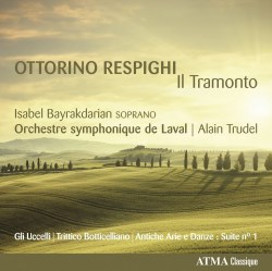 In summary, this is a fine addition to the Respighi discography. The playing is full of atmosphere and energy and the depth of tone in Il Tramonto belies the fact that this is a chamber orchestra. ATMA’s recording is absolutely top class. Lovely disc.