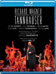 The singers are also fantastic. Peter Seiffert might have lost a little of the youthful juice that coursed through his voice in 2001, but he hasn’t lost much, and his Tannhäuser remains a triumph of stamina and energy. There is still a golden, energetic hue to his voice, and you never once fear that he will tire, which is about as good as you can hope for in this thankless role. He is matched by Ann Petersen, whose Elisabeth has a touch of steel at the beginning for Dich, teure Halle, but who softens beautifully as the opera progresses. She is deeply moving in the Act 3 prayer, having provided the backbone of the big Act 2 ensemble. As in Marek Janowski’s audio recording, Marina Prudenskaya makes a warm, sultry Venus, sensual and alluring, and a total vocal contrast to Petersen’s Elisabeth. Peter Mattei is also a top-notch Wolfram. He has a deeper, more authoritative way with the role than does Christian Gerhaher for Janowski, or Thomas Hampson for Barenboim’s 2001 recording, but he is every bit as moving and totally sympathetic; a wonderful singer. Peter Sonn sings his minor part with a bright, well contrasted tenor, and Rene Pape’s unarguably authoritative Hermann is, if anything, even finer than he was in 2001, with a richness to the voice that combines humanity with grandeur.
