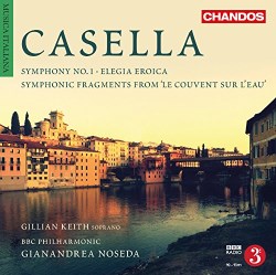 The criticism most often levelled at Casella is that he was something of a musical chameleon. He embraced a wide range of musical styles to the point that it can be hard to know which is the 'real' musical voice of Casella. This holds true even across the decade of writing that encompasses the three works recorded here from the Francophile ballet excerpts Le Couvent sur l'eau to the surging Romantic Slavic drama of the Symphony No.1. The disc opens with the wholly charming Symphonic fragments from Le Couvent sur l'eau. The French title and the dedication "a mon cher ami Pierre Monteux" gives more than a hint of the gravitational pull of the music. According to the interesting, well-written liner by Gerald Larner, this suite (in all but name) was once popular. Such are the quirks of fate - it certainly deserves to be better known but this is a piece that has fallen far from any kind of standard repertory and indeed has not featured in the Naxos survey. The urbane sophistication and brilliantly effective scoring shows this Chandos disc, both playing and engineering, at its best. Casella re-ordered the fragments from their original narrative positions in the score for maximum musical effect. The music is more overtly colourful and picturesque than the other two works on the disc. The opening Marche de fête is a sterner procession than the festival of the title might imply - more a latter-day march of the charioteers but the following Ronde d'enfants has all the scampering light-hearted counterpoint the listener might expect. In the third movement - marked Barcarolle and Sarabande Casella introduces a wordless soprano in the former, sung here by Gillian Keith. She has an ideally light quality but a rather fluttery vibrato which is not wholly to my taste. In the remainder of the suite there are significant and well-played opportunities for string solos and some delightful touches in the orchestration. Indeed, it is in the passages of lighter textures and greater musical restraint that the work and this performance make their impact.