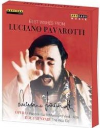 This box of three Blu-ray discs comes with "Best Wishes" from tenor Luciano Pavarotti (1935-2007) as its title. As he has been dead since September 2007 this is some kind of crude marketing that extends to the lack of any supporting documentation whatsoever in the contents. Its rather of the "stack it high and sell it cheap" variety, there being no leaflet with a track-list let alone a booklet about the contents. The discs are in cardboard sleeves with basic cast details, even the names of the Directors of the two operas are not given let alone a track list. Okay, so the price is bargain-ish and you get what you pay for. This includes a short advertising clip, in 16:9 aspect, of another opera as an introductory precursor to the three items. In the case of the two operas, Aida and La Boheme, you get traditional productions in period costumes. Be thankful that 'Regietheater' and concept are absent whilst costume and staging, particularly in Aida, are quite magnificent.