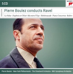 These recordings represent Pierre Boulez’s first thoughts on the works of Ravel. He later returned to the music for a survey recorded for DG. These were mainly recorded during the late 1960s and early 1970s — the songs and other rarities are somewhat later — when Boulez seemed to be consciously averse to the idea of the washes of impressionist sound that had been the stock-in-trade of Ravel performances by his predecessors. This analytical approach was abetted by closely observed CBS sound that stripped away much of the warmth from the scores. Unfortunately this approach has been further exaggerated by the 24-bit re-mastering of the original tapes, with problems of balance and warmth further exacerbated. It was an oddity of Boulez’s recordings of impressionist music at that period that his live performances often had a greater sense of romantic ardour than his studio versions; the CBS set of Debussy’s Pelléas et Mélisande, for example, lacked the sense of emotional engagement that was definitely present at his live performances at Covent Garden on which the recording was based and which can be heard to better effect in his later Welsh National Opera performance on DVD. Nonetheless there is a very solid case to be made for assembling his Ravel recordings into such a compendium as this.