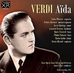 I have been listening to opera for over forty years and do not generally find myself standing out against received wisdom - but I am genuinely puzzled by the accolades for this set, the obvious merits of Björling and Christoff apart. If you want an Aida of the type Milanov essays then Caballé does it so much better; meanwhile, in my dream-world I wish I could hear Björling here and Leontyne Price in her pomp singing this opera together, with Merrill as Amonasro, Cossotto as Amneris and either Christoff or Ghiaurov as Ramfis. I will still play this recording just to hear Björling and Christoff and to luxuriate in Pristine’s revitalised sound, but skip over Milanov’s arias.