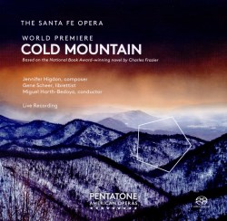 There are many other fine pieces available but this is my first experience of her writing for the voice. Indeed this is her first attempt at an opera and again it is a most rewarding work. It is a dark and dramatic tale based upon Charles Frazier’s novel of love and loss during the American Civil War, with Higdon concentrating on the dramatic integrity of the text. The first act opens not with the orchestra but with dialogue between Teague, who is looking for deserters and Owens, whose farm he is camped on. This sets the scene for the whole of the opera. The first act especially is driven by the text, the sung line taking precedence over that of the orchestra, which at times seems a little sparse. This works well as this is a drama and one which is related well here. As the second act progresses there is no letting up of the drama, although the orchestra takes a stronger role in the proceedings. The drama of the text remains what is important. Jennifer Higdon has certainly chosen a tough subject for her first opera, one which holds tight onto the American psyche, but she achieves something which neither glorifies nor denigrates the memory of what for many is the nation’s darkest moment.
