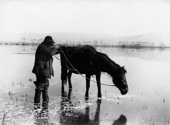 Without a score, libretto or even a synopsis, I can record only generalized impressions. The Maremma is a large and once rather wild region of Italy covering parts of Tuscany and Lazio. At the time to which the opera refers, it was a zone of unhealthy marshlands – drained during the Fascist regime – populated by horse-riding cattle breeders called “Butteri”. A “Buttero” can be seen wading the swamp in the photo reproduced. The opera is clearly verista in style, with a pastel-pastoral orchestral backdrop and a chorus of, presumably, local villagers. Much of the first part is taken up with a love duet between Mara and Giosè. “Love duet” here means, as often in verista pieces, sections sung in alternation, the singers coming together just for the climax. The match is apparently not approved by Mara’s family, since Turi can be heard demanding his daughter back – Zecchillo is clearer with his words than the others. The result is a confrontation between Giosè and Turi, concluding in the former’s death and Mara’s distraught final solo. As I say, I hope I’ve got all this right with only the singer’s words to base myself on.