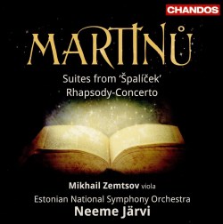 The only competition for Špalíček is the complete recording under František Jílek. This dates from 1988 but still sounds good. It takes a disc and a half and in its latest issue is coupled with The Spectre’s Bride and two other works (Supraphon SU39252). There are several other recordings of the Rhapsody-Concerto, including a classic one from Josef Suk with Vaclav Neumann which dates from 1987 (Supraphon 110374-2). Several more recent entries include one in the late Christopher Hogwood’s series of Martinů violin concertos for Hyperion where it is slipped into the third volume, played by Bohuslav Matoušek (review). Both these excellent players are primarily violinists whereas Zemtsov is a viola specialist and I fancy I can hear his enjoyment of the richer sound of the lower instrument. As performances they all seem fine and choice can depend on whether to take the plunge with this coupling or to hold out for the complete Špalíček and a separate version of the Rhapsody-Concerto. I hope Neeme Järvi continues to work with this fine orchestra and gives us more Martinů and more Estonian composers. Can we have a complete version of Veljo Tormis’ opera Luigeland?