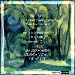 Forgotten Records moves somewhat off its beaten track in this disc by conjoining a 1954 Decca coupling of quartets by Vagn Holmboe and Nielsen with a 1997 recording of the latter’s Piano Suite, Op.45, the dramatic 1919-20 Luciferiske.