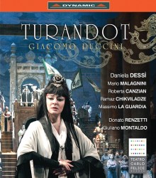 Released on the Dynamic label this lavish production from Teatro Carlo Felice, Genoa - with its mainly Italian cast directed by Giuliano Montaldo reviving Fausto Cosentino’s original production - could be described as a traditional period staging. The sumptuous set design by Luciano Ricceri and costumes by designer Elisabetta Montaldo Bocciardo principally using a range of traditional Chinese clothing takes the audience back to ancient Peking as Puccini intended. Only Emperor Altoum’s ridiculously large headwear seems out of place.