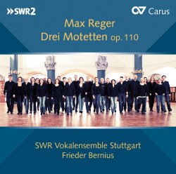 My introduction to the Drei Motetten, and for that matter to the music of Max Reger, came in the form of a gift of an old East German LP on the Eterna label. If my memory serves me, I think it was by the Berlin Radio Chorus. I was smitten. I have since managed to hear the Motets performed live, and have also acquired a very fine CD, also on Carus sung by the NDR Chor Hamburg directed by Hans-Christoph Rademann (83.154). This is now available in their mid-price series (83.326), of which John Quinn said "This is a marvellous disc, which I recommend very strongly indeed." Both these recordings, I think, coupled the motets with the excellent Acht geistliche Gesäng Op.138, a series of lovely spiritual music.