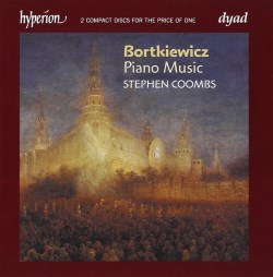 Speaking of Rachmaninov, he must surely have envied Bortkiewicz his choice of one title: Lamentations and Consolations. It would have fitted the older composer's musical-psychological temperament to a T. That work, alternating four Lamentations with four Consolations, makes a vigorous launch to this two CD set: 2 CDs for the price of one. This twofer was issued in 2000 but not reviewed here until now. Coombs seems unshakeably confident in the worth of the music and in its playing. This he had already proved when he recorded Bortkiewicz's Piano Concerto No. 1 for vol. 4 of Hyperion's illustrious and still growing Romantic Piano Concerto series. The pity is that he may never have had the chance to record the other two Bortkiewicz piano concertos. Coombs is not one to restrict his recordings to the accustomed trails. In his discography you can find major works by Hahn, Vierne, Glazunov, Arensky, Pierné, Massenet and Scriabin. I hope that there will be more.