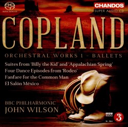 I know that traditionally there are only ‘Four Dance Episodes’ extracted from the ballet Rodeo (1942): Buckaroo Holiday, Corral Nocturne, Saturday Night Waltz and the famous Hoe-Down. However the missing third movement is rather fun, complete with honky-tonk piano. Fortunately, this was featured by Naxos in that label's excellent recording of the full ballet (8.559758). I would rather Chandos had dumped the ubiquitous ‘Fanfare’ to include this relative novelty.