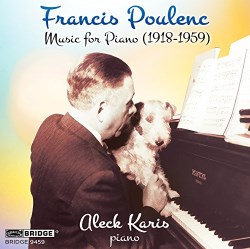 Karis includes several of the most popular Poulenc works, including the Theme and Variations of 1951, the Mouvements Perpétuels of 1918, and the Trois Pièces of 1918-28. He also offers the Fifteen Improvisations. Although these were composed over a period of three decades, Karis treats them as a single composition, a view which holds up well. I miss the set of eight Nocturnes from 1938; others may crave the Suite Francaise but this is a good selection for a single disc of Poulenc.