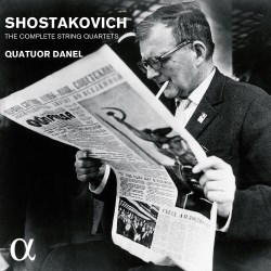 My recordings of the quartets have largely revolved around Soviet cycles. As well as the Borodin’s set mentioned above I own their second recording, this time of the complete works, recorded between 1978 and 1983 on Melodiya MEL CD 10 01077, as well as most of the Shostakovich String Quartet’s recordings for Olympia, which are now available in a box set on Alto ALC 5002. I suppose my opinion may have been clouded by Russian performance practice. Whilst I greatly enjoyed the performance of the Quatuor Danel, I did at times find that their more western sensibilities lacked on occasion the visceral intensity that I had become use to. However, in the slower movements the Danel shine and they are the equal to anything that the Russians have to offer. For example, their control in the slow opening Elegy (Adagio) of the E flat Minor Quartet, No. 15, one of my favourites among all Shostakovich works, is wonderful and intense. Their performance in the rest of the quartet especially when the theme from the opening movement re-emerges in the final Epilogue (Adagio) is one of the finest on record. Another highlight is the B flat Major Quartet, No. 13. Here their tempos are slightly slower than most but they prove themselves excellent interpreters of this single movement work.
