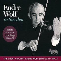 Endre Wolf (1913-2011) was born in Budapest, and studied at the Franz Liszt Academy of Music with Jenö Hubay and Leo Weiner. He was concertmaster of the Gothenburg Symphony Orchestra in Sweden from 1936 until 1946, and for the duration of the war gave solo and string-quartet performances throughout neutral Sweden. After the war he emigrated to England and, between 1954 and 1964, was a professor at the Royal Northern College of Music in Manchester. He was a frequent visitor to the Henry Wood Promenade concerts in London where, in 1954, he performed the Brahms Double Concerto with the French cellist André Navarra at a Prom with the Hallé and Sir John Barbirolli. Such was their enthusiasm for the work that they performed it together four more times in the Royal Albert Hall. His other Prom’s ventures included concertos by Mendelssohn, Beethoven (twice) and Brahms (twice). After leaving Manchester, he held teaching posts at the Royal Danish Academy of Music in Copenhagen, the Royal College of Music in Stockholm, Lund University and the Swedish Radio music school, near Stockholm. He maintained a career well into his eighties, and lived to the grand old age of ninety-seven.