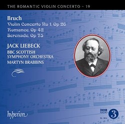 Still, Hyperion's program, with the familiar G minor concerto anchoring two less frequently played works, makes a pleasing vehicle for the young violinist Jack Liebeck, who has extensive concert, recital, and film credits. His tone quality is clear and vibrant, though the timbre, at times, lacks depth. He can, however, expand with amplitude into impassioned climaxes, or scale down for passages of hushed stillness, all without losing quality; only at the start of the concerto's Adagio is the sound briefly "thready." Liebeck has virtuosity to spare, tossing off the double-stops incisively, pacing the various flourishes with a rhapsodic flair. He gives shape to the more elaborate solo lines with clear, subtle accentuations, and, particularly in the Serenade, he really feels the expressive power of the harmonic shifts.