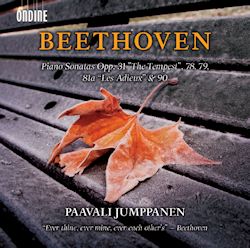 Much of the short second disc focuses on the sonatas in which Beethoven looked back, in his wiser years, to the classicism and simplicity of his youth. And here Jumppanen especially excels, his playing clean, glittering, and free of artifice. He lingers over the slow, mysterious introduction of Op. 78, but the rest of this ten-minute piece is played with an innocent simplicity, and a hesitance ever to make a loud noise. The next sonata is chattier by nature, but he again takes a much-appreciated soft touch; the slow movement is gorgeous.