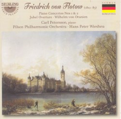 Flotow is now famous for one thing, his opera Martha, which was premiered in 1847. It held the stage right through into the 20th century but has more recently faded from popularity, joining the other 30 or so operas he penned, not to mention many works in other genres. These performances of both piano concertos are splendidly crisp with an enthusiastic orchestral accompaniment from one of the Czech Republic’s ‘other’ orchestras. The pianist is a very skilled musician and though lacking comparisons one cannot imagine anyone doing a better job with these surprisingly unknown pieces. Why are they not performed regularly? For me they are as much fun to hear as the Liszt and Chopin concertos but I imagine aficionados of these much better known composers may balk at the comparison. The Jubel Overture, written in 1857 to celebrate the re-opening of Schwerin Castle where Flotow served as musical Intendant, is another entertaining piece, full of pomp and splendour. Finally there are all five movements of the Incidental Music to a five act play by Putlitz about the man who became William III of England. The second interlude, that for Act 3, is striking for having ‘Rule Britannia’ as its main theme, which also returns in the Act 5 Interlude. Once again Flotow demonstrates his gifts for mixing melody and drama and leaves me perplexed that such music has sunk into utter obscurity.