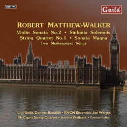 Robert Matthew-Walker's activities have ranged far and wide. He is by no means a figure exclusive to the classical music world. He studied at Goldsmith's College, University of London, the London College of Music and with Darius Milhaud (1962-63). Matthew-Walker's worklist is not inconsiderable: six symphonies (1956-68) of which only no. 1 is not in one movement, Symphonic Variations for orchestra (1955), A Distant Summer – Rhapsody for orchestra, concertos for horn, oboe and cello (2), various piano sonatas and four string quartets. Amongst his solo piano works is Martin Jones – His Toye (1989). His other works include Days To Remember: Three Pieces for Rock Band (1966) and a Meditation on the Death of Elvis Presley (1980). Op. 44. The Departure of The Queen of Sheba (1981) might well reflect an inventive sense of humour.
