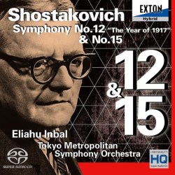 It seems Shostakovich has become the new Mahler, at least in Japan. The Japanese label Exton currently have three Shostakovich cycles in progress. There is one with the Japan Philharmonic and Alexander Lazarev, another with Michiyoshi Inoue and the Osaka Philharmonic (although only two symphonies so far, the Fourth and Seventh, it’s shaping into a mighty cycle) and this one with Eliahu Inbal and the Tokyo Metropolitan Symphony Orchestra. Inbal's cycle is the first to reach these two symphonies – both it should be said difficult to bring off. He does so with some panache. This is down to the excellent playing of his Tokyo orchestra, to Inbal’s willingness to treat the Twelfth as a serious score (perhaps too seriously) and to treat the Fifteenth as the masterpiece it is. Often overlooked, principally because we rarely get a chance to hear Japanese orchestras on disc in the west, is the astonishingly beautiful playing. Typical of the TMSO, and Japanese orchestras in general, are a deep string tone and a beautifully cultured brass sound.