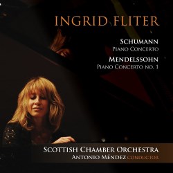 Even finer, however, is the less familiar Mendelssohn concerto, which has tremendous bounce to the fiery opening, full of vigour and excitement. There is wonderful energy and busyness that really makes you sit up and take notice, but there then comes such wonderful sweetness to the slow movement, and the same quality of the of the violas and cellos as you get in the slow movement of the Schumann; namely a beautiful simplicity that allows the music to unfold perfectly naturally. The finale has the same tripping quality to it as the finale of Mendelssohn’s Violin Concerto, and Fliter glides nimbly over the keyboard, seeming barely to stroke the keys as she skits on to the next phrase.