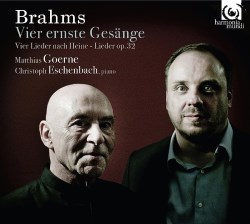 The disc culminates in the Four Serious Songs, but the opening Op. 32 cycle makes a most arresting starting point. The darkness of tone in ‘Wie rafft ich mich’ is as profound as that depicted in the poem, and Goerne and Eschenbach make something profound out of Brahms’ study of contradictory nature in ‘Nicht mehr zu dir zu gehen’. Eschenbach's depiction of the river in ‘Der Strom’ is as powerful as Goerne's existential singing, but both then increase the intensity yet further for the subsequent ‘Wehe, so willst du mich wieder’. After this almost unremittingly bleak first half, however, the second half of the cycle slips into a beautiful (though hardly relaxed) major key, and the effect is delightful. Goerne hardly alters the dark, even slightly baleful character of his voice, but Eschenbach's piano playing takes on a more gently suffused tone which I found utterly beguiling, culminating in a truly blissful account of the last song, ‘Wie bist du, mein Königin’, with Goerne achieving a magical pianissimo in the final line.