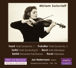 Miriam Solovieff has been the subject of a previous disc from this label (see review) where matters biographical can be pursued. There we heard the fruits of a single recital but here we hear two German broadcast performances, from January 1960 and February 1961, heard in characteristically excellent sound. She is joined by the splendid Jan Natermann.