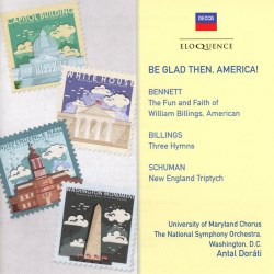Thus it was a happy idea for the National Symphony Orchestra to commission a Billings-inspired work from Robert Russell Bennett to mark the American Bicentennial in 1976. The result was The Fun and Faith of William Billings, American. It’s a work for chorus and orchestra based on some of Billings’ choral pieces. The booklet reprints a note by Bennett in which he comments that “no attempt is made to catalogue [Billings’] best songs. Songs, anthems and parts thereof are sent for as needed…” The work, which plays continuously, includes two purely orchestral sections, one of them an Introduction. The Billings pieces include the celebratory O Praise God, fervently done here and When Jesus wept, also known as ‘Emmaus’.