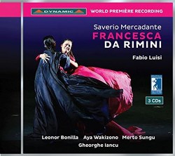 Recordings of Mercadante operas have been as rare as performances: Opera Rara has lived up to its name by releasing half a dozen in recent years and the Dynamic label which is responsible for this one previously issued Pelagio, in keeping with its aim of making more recherché repertoire available to the collector. Of course other composers have been drawn to depicting the most famous pair of “star-crossed lovers” to be found in Canto V of Dante’s Inferno: Tchaikovsky, Rachmaninov and Zandonai all wrote works based on it and Rossini, who had already retired by the time Mercadante began to compose this opera, quoted the famous ‘Nessun maggior dolore’, in his gondolier song in “Otello”.