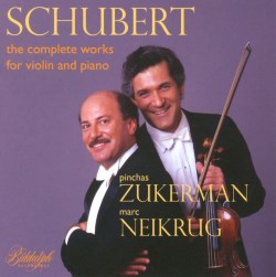 You wouldn’t expect anything less than aristocratic poise, rich romantic tone, unabashed lyricism and sheer class from the Zukerman-Neikrug duo. Their tempi in the Schubert Sonatas, or Sonatinas depending on one’s preferences in nomenclature, tend to be on the easy-going side, allowing phrases to breathe. If one happens to find that Zukerman’s interpretation of Schubertian Allegro molto comes perilously close to Allegro moderato, then compensation arrives in the form of phrasal sophistication and suave elegance in D.384’s slow movement. Finales have grace, even if they’re not exactly aerial in impulse, and slow movements reveal Neikrug’s nobly balanced statements, without undue over-inflation. So these sonorously Old School performances of the Sonatas will please the duo’s many admirers: for rich, warm gemütlich Schubert look no further. For other, different qualities from older players, search out Grumiaux’s agility and Goldberg’s style.