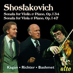 There are of course many other recordings of both works, though not so many with the two coupled together. Performances by the two dedicatees can be found, though with difficulty. Of more modern ones, I can recommend the one by Shlomo Mintz and Victoria Postnikova, originally on Erato and now on Elatus (0927-49554-2), on which Mintz plays both violin and viola, the latter sounding perhaps rather violinistic. These performances introduce more light and shade into the works than the present Soviet team. There is also an interesting recording of transcriptions of the two sonatas for the solo instrument with string orchestra and percussion, with Gidon Kremer and for a second time Bashmet as solo players (review). This also softens the asperities of the originals. However, to appreciate the original conception a recording like this needs to be heard.