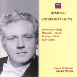 This album comprises of a compilation from two recording sessions of duets recorded in London by James McCracken and his wife, Sandra Warfield in 1964, and of five arias he recorded three years later in Rome as an adjunct to his complete recording of “Pagliacci”, released here for the first time on CD. Everything in this Eloquence release finds him in finest voice; he was never the subtlest artist and he has a few vocal mannerisms which some find irksome, but the sheer heft, passion and commitment of his singing seem newly striking after a lapse of fifty years and the continuing dearth of his vocal type: a voluminous, somewhat tight, metallic tenor capable of thrilling projection and ringing top notes.