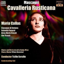 Most of the time here, Tullio Serafin's conducting is masterly. He infuses the triple-meter sections with a nice swing: hearty after the Intermezzo, amusingly insinuating on Lola's exit. He underlines the foreboding under Santuzza's entry; limns a brooding, plaintive introduction to Voi lo sapete; and he and Callas bring out the pathos at "La tua Santuzza." Only the overly languid pace for the opening chorus is questionable.