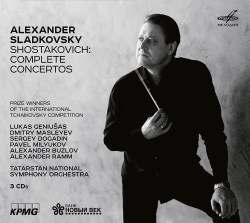 Consider something else; the catalogue is full to bursting with recordings of all six works either in single disc pairings or collected 'sets' - DG, Warner/EMI, Brilliant Classics, Decca to name but four of the latter. However, none of these sets offer a modern or coherent vision from a core group of the same artists recorded over a concentrated period of time. All the sets mentioned above are collations of different orchestras, conductors and recording dates. The only other set that seems to offer the same conductor/orchestra throughout appears to be the Blu-ray set of the complete symphonies and concerti from Gergiev and his Mariinsky orchestra. But this comes at a considerable price and does not appear to have been released in an audio/CD format. So on CD alone - rather remarkably - conductor Alexander Sladkovsky and his Tatarstan Symphony Orchestra seem to have the field to themselves. I have to say - even if the competition was more intense in terms of 'complete' surveys I think these new versions would hold up with the best. Sladkovsky is a name completely unknown to me, although I see that he has appeared on recent MW reviews with a well received group of Mahler Symphonies and a glowingly received group of piano concerti by Rachmaninov, Ravel and Gershwin. His orchestral colleagues on both those sets are, as here, the Tatarstan Symphony Orchestra and goodness me they are quite superb in Shostakovich. I hanker rather nostalgically after the raw power of Soviet ensembles and while there is none of that here, instead there is a legacy of intensity and dynamism that is absolutely right for this composer. Sladkovsky as well is utterly at home in this idiom - time and again his musical choices just feel right. Not always completely predictable or 'standard' - but they work. Allied to this - I really do feel there is a sense of continuity across all six works. Yes of course masterpieces such as these can and should be interpreted in a variety of ways but I have enjoyed greatly the way Sladkovsky manages to bind the early 1st piano concerto to the late sorrowing 2nd Cello concerto.